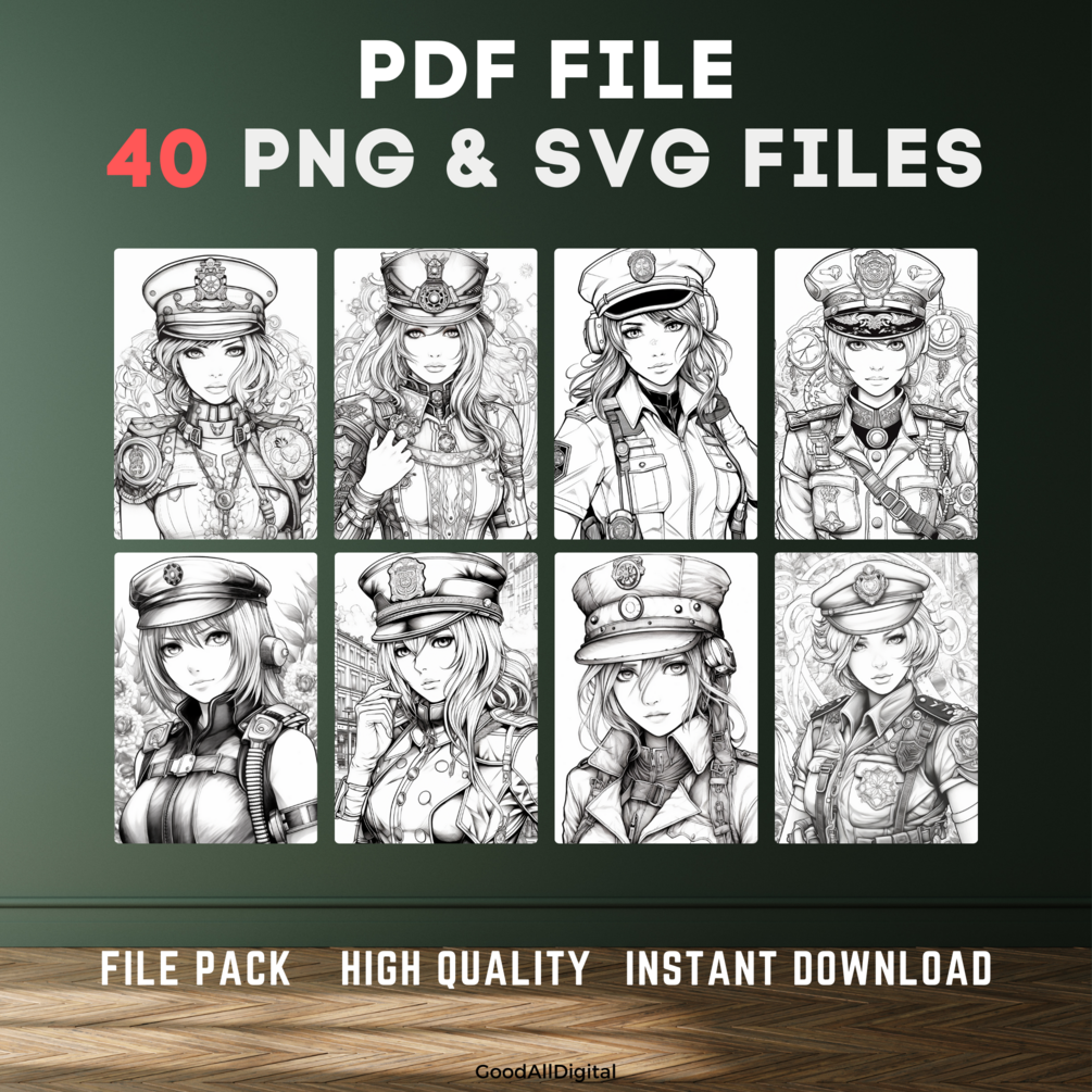 The "Anime Police Girl Coloring Book Page Manga Policewoman Printable Tinting Sheet For Adult Mind Relaxation Activity Lady Cop Painting Sketch" is a digital coloring book page that features a detailed illustration of an anime-style policewoman. This printable sheet is perfect for adults who enjoy coloring as a relaxing activity, and for fans of manga and anime.