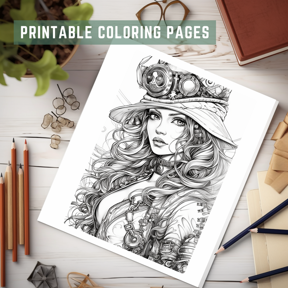 Anime Pirate Girl Coloring Book Page Manga Sea Thief Woman Stunning Corsair Sailing Lady Printable PDF Painting Sheets Pigmenting For Adults